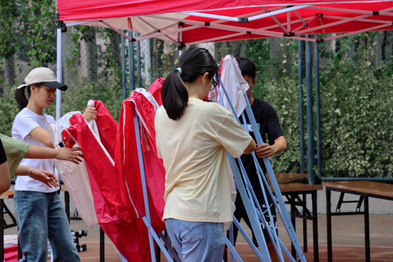对班助展开迎新工作培训,准备迎新材料,将学生卡、宣传海报、漂流信、文院特色口罩和新生指南等物品装入文院专属文件袋中并装箱准备。16日上午,新生助班开始布置迎新场地,搭建帐篷、摆放桌椅物品,粘贴迎新横幅,期待着新生的到来。捷克论坛