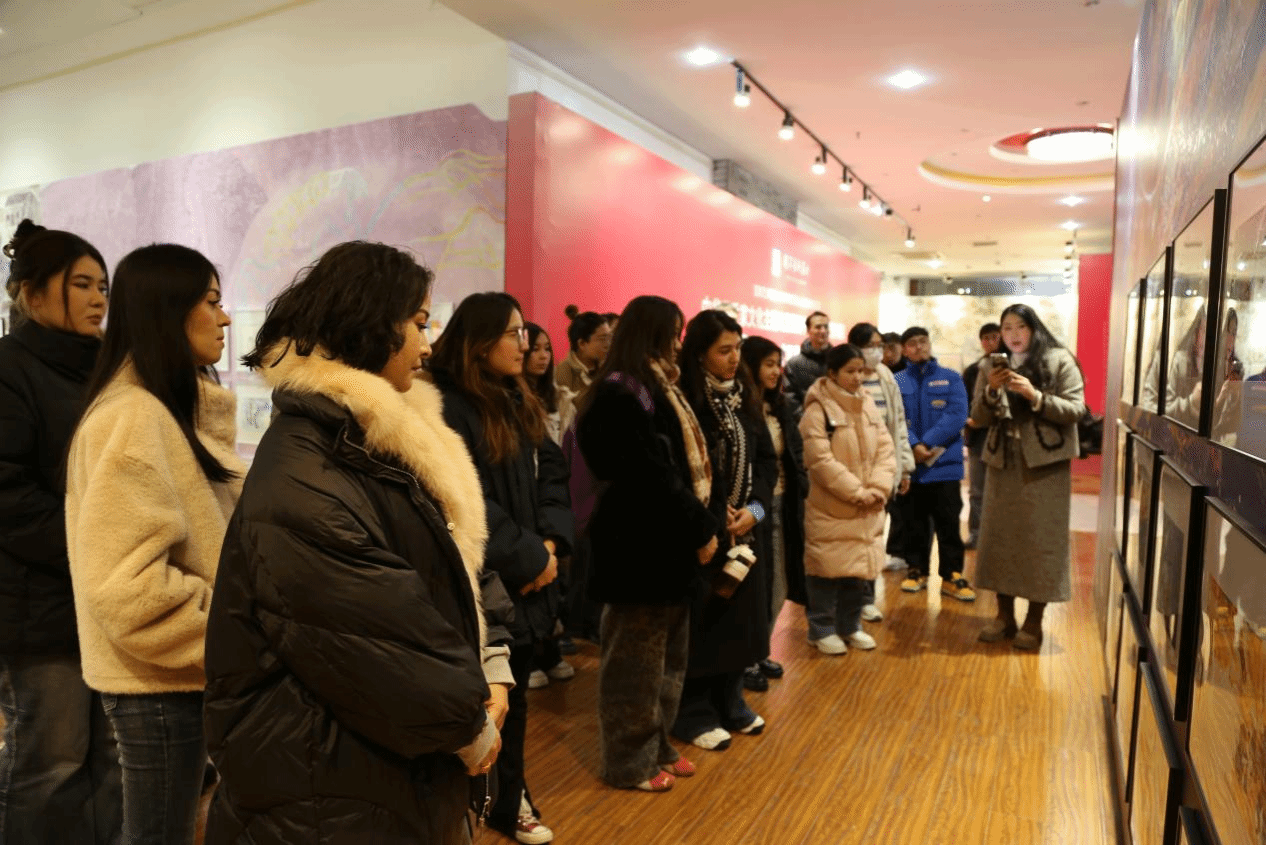 组织少数民族学生赴舜道艺术馆集体参观“中华优秀家文化主题儿童图画书创作人才培养项目成果展”,在图文交响中体悟家国情怀,于色彩光影间汲取精神力量。