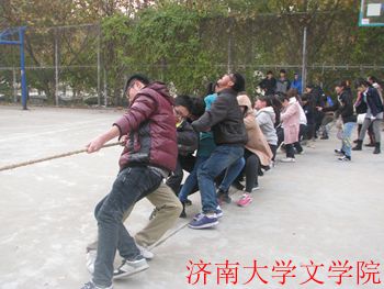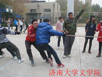 上午7:45,拔河比赛第一轮正式开始,由传播1303班对阵汉语1303班,传播1302班对阵汉语1301班,传播1304班对阵汉语1304班,传播1301班对阵汉语1302班。经过激烈的较量,传播1303班、传播1302班、汉语1304班、传播1301班分别战胜各自对手挺进四强。在随后的半决赛中,传播1301班战胜汉语1304班,传播1303班战胜传播1302班进入决赛。在决赛中,传播1301班与传播1303班势均力敌,绳上的标识在河界间不停地左右移动,最终,传播1301班在实力上更胜一筹,以2:0的比分战胜传播1303班获得冠军。在最后进行的三、四名决赛中,传播1302班战胜汉语1304班收获季军。
