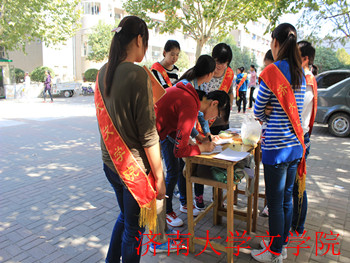 青年志愿者服务队于10月11日上午11:00在八食堂广场组织开展“助班,我想对你说”活动,参加活动的人员主要是志愿者及大一新生。