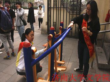 上午7:50,志愿者们在升华广场集合后,便赶往老年公寓。此次服务内容主要分两项,打扫卫生和陪老人聊天。简单分组后,志愿者们就各司其职。第一队志愿者负责打扫院落卫生,在领到抹布、扫帚、簸箕等清洁工具后,便自觉的分工合作,在工作人员的指导下擦玻璃、擦健身器材、扫地等工作都有条不紊的进行着的;与此同时,另外一组的志愿者们对老人嘘寒问暖,捶腿揉肩,老人则亲切的拉着志愿者的手,问生活是否习惯,学习是否好,场面和谐而温馨。活动结束时,志愿者们依依不舍地跟老人们道别,最后志愿者们在老年公寓的门口合影留念。