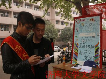 青年志愿者们在做足调查问题和正确使用手机小知识的准备之后,便走入人群当中,向来往的同学宣传如何正确看待手机:“你会正确接听电话吗?”“你是否经常在手机充电时拨打电话?”志愿者们用提问的方式吸引同学们驻足倾听。在提问与回答过程中,志愿者们用他们的热情向同学们阐述了过度依赖手机的危害性,以及纠正在生活中一些常见的错误使用手机的方法。听到讲解的同学们纷纷表示认识到了正确使用手机的重要性。最后,青年志愿者们向参与活动的同学们赠与事先准备好的小礼物、小零食,至此,“如何正确看待手机”的活动顺利结束。