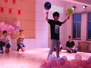在开场视频师生的祝福声及主持人热情饱满的祝词下,晚会正式开始。一首舒缓的歌曲独唱《回忆的沙漏》过后,酷炫的花式篮球表演将晚会推向了今晚的第一个高潮,其中,花式篮球协会会长精湛的技艺,丰富的表情让观众赞叹不已;办公室的《青春万岁》慷慨激昂的朗诵,展现了当代大学生的青春风采;记者团的小品《土豪,我们做朋友吧》以其夸张的表情动作,幽默诙谐的语言赢得了观众好评;随后,轻快的吉他弹唱,梦幻的华尔兹舞蹈,俊男靓女,给观众带来了一场视觉盛宴;来自捷克论坛
