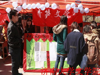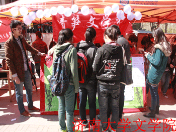 为响应弘扬“国学经典”的号召,让更多的同学感受传统文化的魅力,3月20日上午11:30,青笋文学社于八食广场举办了社团风采展活动。
