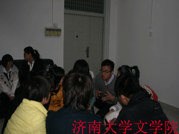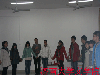 培训于18:30正式开始,共分为四个环节,张老师首先介绍了本次培训的背景、原因以及要达到的目的,随后他将所有人分为四个小组,培训在第一个环节“说:你好”中拉开了帷幕。根据要求,每组同学要相互握手、互相鞠躬90度并说“你好!”,这些夸张的动作使彼此有了更深层次的认识。第二个活动环节是“你拍拍,我拍拍”,每组同学站一队,为自己前面的同学按摩肩膀和腰背,然后再转位置给刚刚的人按摩。通过肢体接触以及互相关心的行动,张老师希望大家明白,你为他人付出什么也会得到他人什么样的回报,同时也强调了工作中沟通协调的重要性。第三个环节是“盲行”,即两人一组,轮流扮演盲人,同伴牵着“盲人”前行。在这个活动中大家体会到了信任以及责任的重要性。最后一个环节是相互夸奖,一人站在小组中间,由其他成员轮流指出他的优点。在这个过程中大家获得了“赞美的动力”,相信以后的工作会越做越好。活动的最后,张老师指出“成功就在于你想不想!”,这更鼓舞了大家的斗志,坚定了大家认真对待学习和工作的信心。