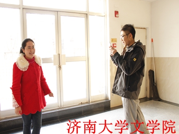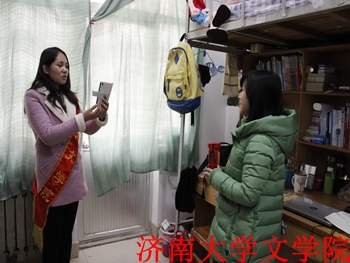 志愿者们还在各个宿舍中寻找特色方言,其中有闽南语、粤语、少数民族方言,还有不少山东本省有趣的地区方言。同学们用丰富的表情神态和夸张的动作将家乡话特色尽致表现出来,引得现场许多不解其意的同学大笑。有的同学为展示自己的家乡话,还自告奋勇,主动进行展示。整个活动在自由欢快的气氛中进行,也让更多人感受了各具特色的家乡话。