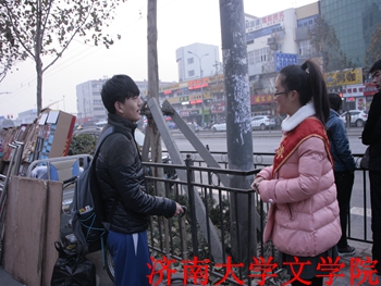 青年志愿者在新西门外的公交车站牌开展“微笑换零钱”活动,希望通过这一小小的爱心举动,给乘坐公交车的人们带来方便也让他们感受到温暖。