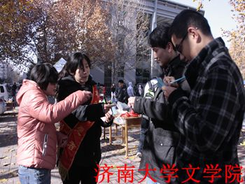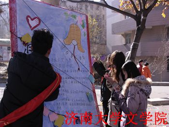 青年志愿者于12月1日11:30,在八食广场举办御寒保暖宣传活动。