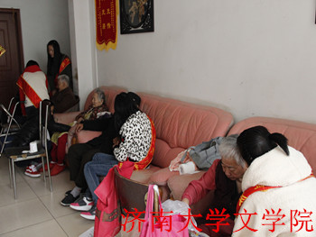 11月16日,文学青年志愿者来到老年公寓,展开一系列服务活动,如为老年人读报,给老人按摩身体,在冬日为老人送去温暖。上午9:00,志愿者带着真诚的笑容和真挚的问候走进老年公寓,看望那里的老人,并与他们谈心。活动过程中,负责人将志愿者分为两组,一组到二楼打扫卫生,为老人创造舒适干净的环境;另一组在一楼大厅里陪老人聊天,了解他们的生活情况。对于大学生的志愿服务,老年人表示十分满意。