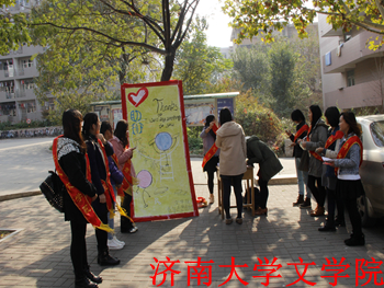 当天天公不作美, 寒风凛冽。但是志愿者们就早早准备好了笔纸,放好了桌子。在桌子旁边立着一幅大画板,上面写着“助班,我好想对你说”。