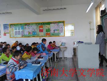 志愿者们都提前备好了课,并准备了PPT课件。在上课时,志愿者们面带笑容,深入浅出地讲着课件上的知识,在讲到重要问题时,志愿者们还别出心裁的抓住学生的注意力,采取鼓励式提问等方式引导学生思考。罗而小学的小学生都很积极活跃,老师抛出一个问题之后,他们都高高举起手争先恐后地回答问题。在四年级一班,志愿者问小学生们“年”的来历,一个小女孩举手起立,将“年”的来历详细准确的讲述出来,其他小同学认真听的时候还进行了补充回答。此外,小学生们也很注意礼貌,下课之后和志愿者们亲切告别,稚嫩的一句句“老师再见”让志愿者们觉得辛苦也是一种快乐。