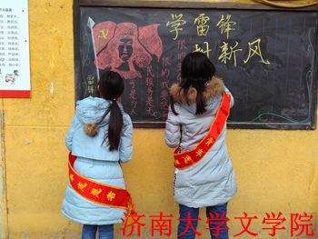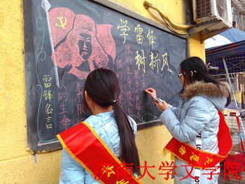 志愿者们来到王官庄,开办主题为“学雷锋,树新风”的黑板报。
