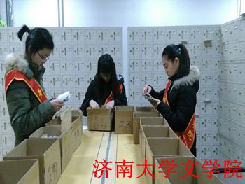 的信件进一步的整理。虽然整理工作繁杂琐碎,但志愿者们都很有耐心,一边整理一边想着收件人收到信件的喜悦。期间也有同学去取件,由于已经分好类了同学们很快就找到了自己的信件。