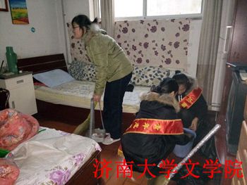 本次志愿服务活动主要任务和往常类似:擦桌子,扫地和拖地。5位志愿者分为两个小组,一个小组在老人住宿的楼上做清洁,另一个小组在厨房餐厅做清洁。在老人住宿的楼上做清洁时,志愿者们见到了许多老人,天气寒冷,老人们有在床上躺着休息的,有在房间里看电视的,也有在房间里看书的,户外运动的不是很多。志愿者们进入一位独居老奶奶的房间时,迎面而来是一股清新的气息,老奶奶的房间打扫的很干净,并且她有一个摆放很多书的书架。她告诉志愿者们一定要好好学习,报效祖国。志愿者们为老人们换了垃圾袋,并把垃圾打包丢到垃圾箱里,还为老人们擦家具,扫地,并把走廊大厅的地用拖把细致地拖干净。在厨房时,老年公寓的工作人员还很热情的要教志愿者们包包子。在此次志愿活动中,老人们与志愿者们亲切交谈,还说要让志愿者们给他们唱歌。在交谈中,老人们肯定了志愿者们的工作,也表扬了他们坚持不懈为老年公寓服务的优良品格。