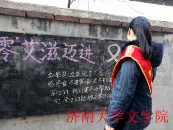 青年志愿者们于12月17日来到槐阴社区为社区公益画板报,宣传艾滋预防和文明社区建设。