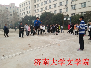 拔河比赛环节中,选手大声喊着口号,不到最后一刻绝不放弃的精神感染了现场的每一个人。定点投篮比赛中,汉语1502班的同学们遥遥领先。寒冷的天气也抑制不住同学们的热情,整场比赛中同学们欢声笑语不断。