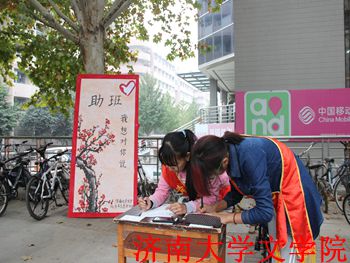 青年志愿者协会为感谢初入校园时引领新生融入大学生活的助班们,特地于10月23日中午11点半到下午1点,在第八食堂广场举行了“助班,我想对你说”的活动。
