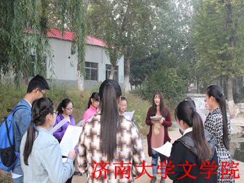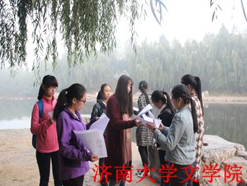 介绍完基本朗诵技巧后,社团负责人带领大家朗诵诗文,逐字逐句,发音标准,并且特别强调发音不必大声,但必须字字饱满圆润,发音到位。各位社团新成员也不顾清晨的微寒,认真地跟着学姐练好每一个发音,丝毫没有懈怠,甲子湖畔,顿时诵声朗朗。