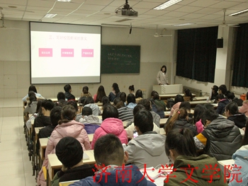 新闻部部长孟飞从她本身所属的新闻专业出发,结合自己工作中积累的经验的对新闻工作进行了总结介绍。她首先讲述了新闻的定义、特点、要素以及新闻的类别,对校园新闻提出了分类,并引入了新闻的框架,随后通过对具体新闻案例的分析点明了新闻写作的方法,阐述了高质量新闻的重要性,令在场各位对新闻有了更加正确深刻的认知。