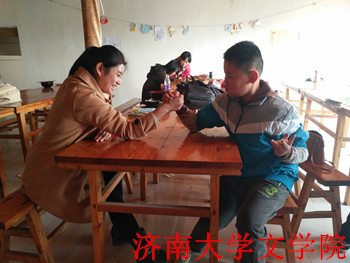 午饭结束后,队员和孩子们进行了力量比较的小游戏。下午讲堂结束后,孩子们恋恋不舍地送支教队员离开。