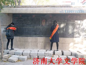 两点钟,志愿者们跟随老师来到了板报处,开始了志愿服务:宣传消防知识和画消防板报。志愿者们先将黑板清理干净,一个志愿者勾勒出框架并把框架的内部划分出许多小的框架,另一个志愿者将一些消防常识和一些消防应急措施填入其中,并在板报的中间位置画有灭火器来呼应主题,使主题更加鲜明。两人分工协作,配合默契。在她们的努力下,板报逐渐变得丰富多彩,而且受到了路过居民的一致好评。
