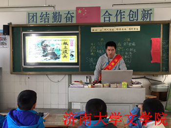 2点10分,志愿者们便早早地到达学校为授课做准备。上课伊始,学生们的兴趣就被志愿者精心准备的成语故事、民俗故事调动了起来,他们专注认真的眼神随着志愿者手中的粉笔移动,图文并茂的幻灯片一张张闪过,学生们的热情也愈发高涨。创意写作课上,志愿者采用启发激励的方式,提出问题,引起同学们的自主思考,并鼓励他们用笔尖描绘一个个崭新的文学世界。两个小时的时间里,志愿者用生动的语言、丰富的知识和趣味的游戏为同学们打开了学习中华优秀传统文化的大门。