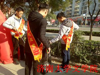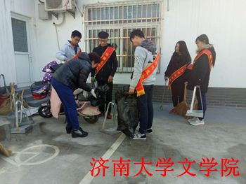 的志愿者走进槐荫区参加义务劳动,进行清扫工作,志愿者们积极参与、热情配合。