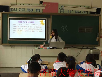 课程分别以创意写作、趣味成语和民俗故事为主题。民俗课上,志愿者们以诗词歌赋的形式讲解传统节日的习俗,对重阳节的重点解读让学生们体会到了敬老爱老传统美德的意义所在;成语课中,学生们积极踊跃地发言分享自己熟悉的成语,志愿者还讲解了某些成语所蕴含的故事;写作课上,志愿者用富有诗意的语言与学生们进行了相互介绍,加深了彼此间的亲切感,为下次的课堂做了良好的铺垫。三堂课异彩纷呈,在志愿者与学生们的欢乐问答间,讨论不断,使课堂气氛高潮迭现。