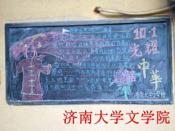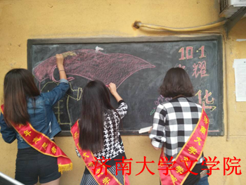 青年志愿者来到了王官庄,进行了一期以“国庆节”为主题的板报绘制活动。