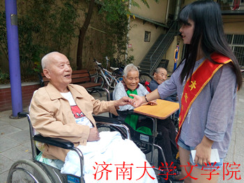 志愿服务结束后,那位打着节拍的老人,拉起一位志愿者的手说:“我今天很高兴,谢谢你们”,眼中满满的都是对即将分别的不舍。