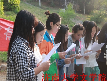 为同学们准备好了诸如《劝学》此类的最能代表传统国学又能启发同学们思考的经典篇目。在青笋朗协成员的领读下,同学们渐入佳境,低头认真朗读,大家面朝甲子湖,迎着阳光以最饱满的状态投入诵读中,在书声中感悟中华传统文化,反思自己言行。在朗诵中,我们能听到大学生对经典国学久违的热爱以及他们年轻的声音里青春的蓬勃朝气,那正是对本届读书节活动最好的认可与支持。