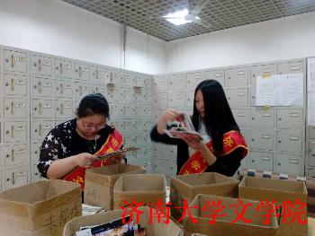 青年志愿者协会成员去往学校收发室,主动整理学校信件。