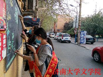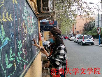 春天到来,万物复苏,所以,志愿者们将此次板报的主题定为“春暖花开”。志愿者们先在黑板的左侧画好象征春天的花草,在右侧画好简笔的小鹿。之后,志愿者们在黑板中央以艺术字的形式写上“春暖花开”四个大字,在字的旁边还有祥云相伴。颇具创意的字体以及娟秀的字迹引得路人频频赞叹。最后,志愿者需要在黑板的空余地方写上与“春暖花开”相关的文字。在此之前,为了让字迹整洁,板报美观,志愿者们先用工具量好间隔,画上间隔线。一个多小时后,黑板报顺利完成。在画黑板报的过程中,路过的人们频频驻足,有赞赏志愿行为的年迈的老人,有教育孩子向志愿者学习的父母,有刚刚放学喜欢画画的学生……甚至还有人特意给志愿者们拍了照。