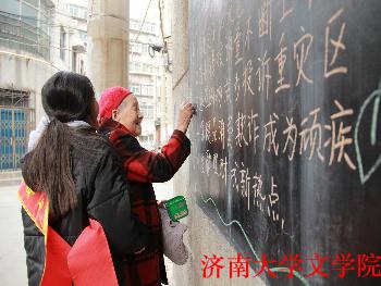 青年志愿者一行人来到槐荫区居委会为该小区居民画板报,为“国际消费者权益日”做了宣传。