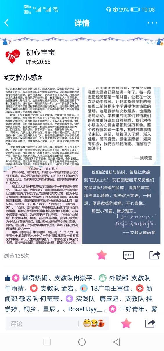 志愿者于5月26日进行了“回忆支教”投稿活动,分享自己在志愿活动中的难忘际遇以及心得。