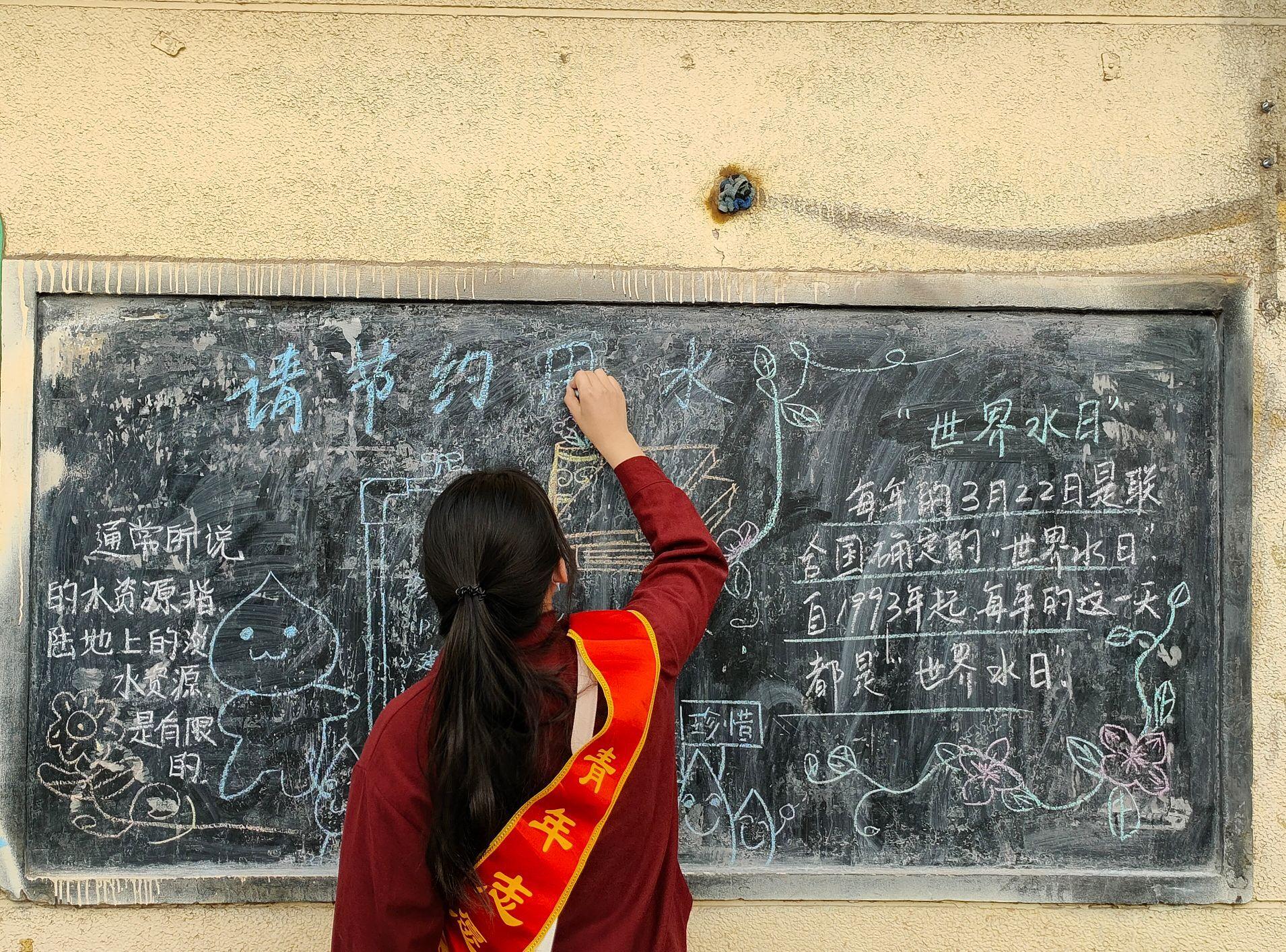 学生党员就活动前期准备工作以及黑板报主题进行了多番分析讨论,在明确了水资源保护这一主题后,志愿者内部以及参与活动的学生党员进行了分工,并对活动流程进行了梳理。3月28日下午三点,社区队志愿者们以及学生党员在校门口集合,活动成员一同前往王官庄社区。到达活动地点后,志愿者和学生党员积极参与活动,大家发挥自己的优势,字迹工整的同学负责板报的文字部分,绘画水平高的同学则负责板报的插画部分,大家各司其职,再加上捷克论坛