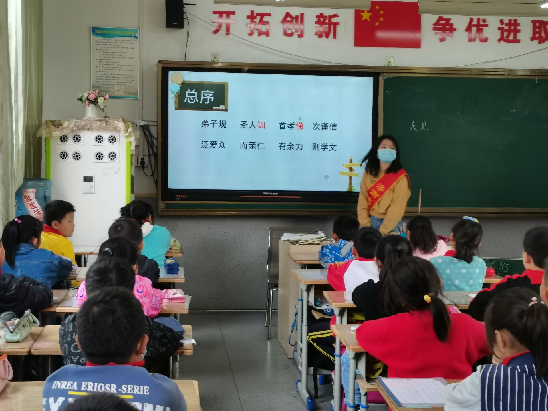 学生党员志愿者认真履行职责,保证课堂的纪律性与学生的安全。志愿者们积极传播优秀典故,同时对课堂上表现突出的学生进行奖励,师生互动,课堂气氛高涨。本次活动在和谐融洽的氛围里圆满结束。