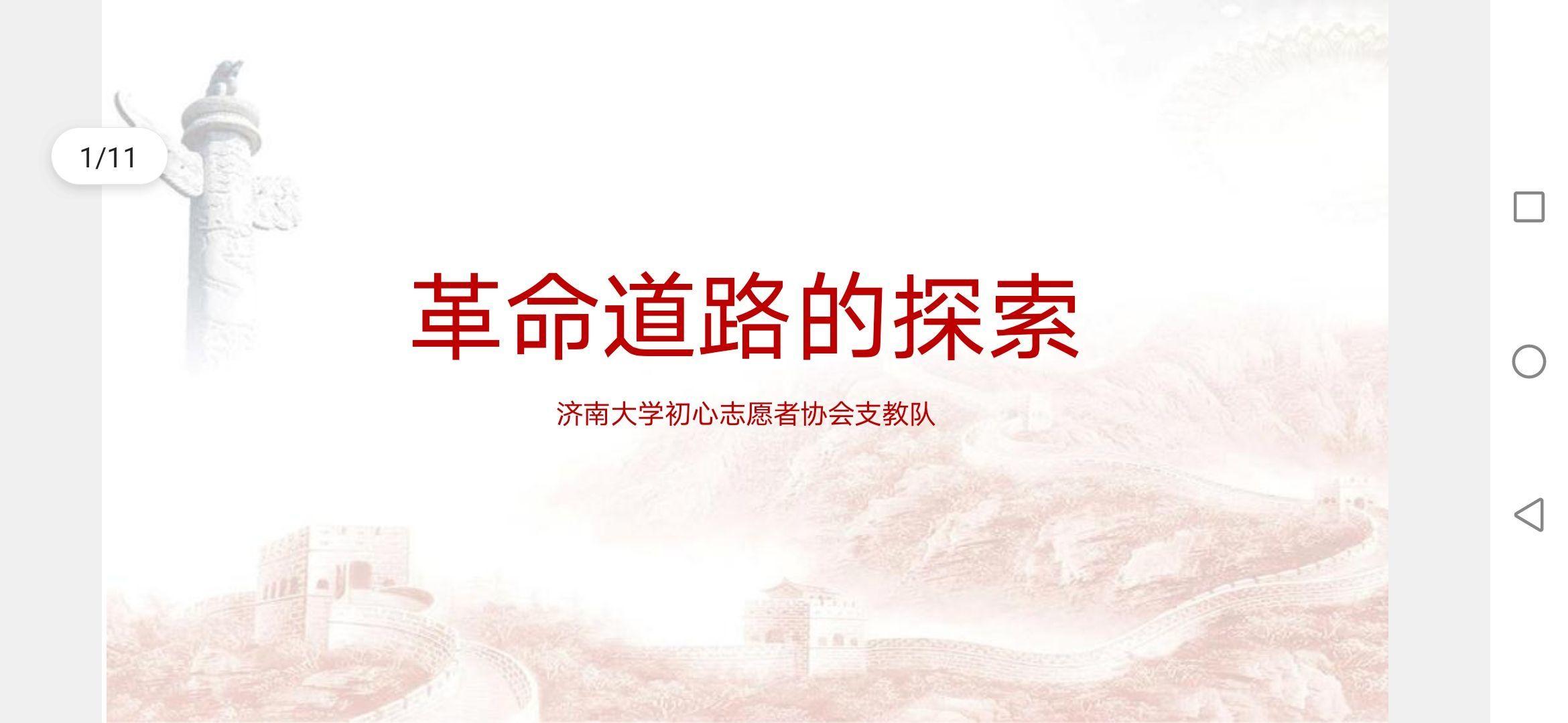 活动开始前,由支教队负责人下发通知,进行申请策划,明确演讲主题和内容,确定本期主题为“中国共产党独立走上革命道路,伟大的长征精神”,并鼓励志愿者们积极参与。活动开展过程中,志愿者们通过浏览官网、查阅书籍文献等多种方式,积累素材制作出了丰富多彩的视频,向小朋友们简要地介绍了“遵义会议”“瓦窑堡会议”“红军长征”等党的历史上的重大事件,讴歌和赞颂了“坚韧不拔,自强不息,勇往直前”的长征精神。随后,志愿者将制作好的视频发给老师,小朋友们在老师的陪同下认真观看了视频。