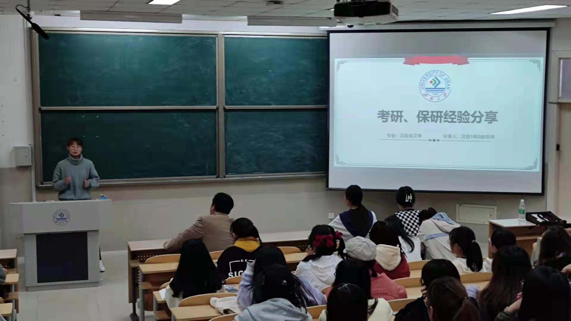 于10月15日下午在第十一教3101教室召开经验分享交流会,邀请保研到北京师范大学的优秀学生赵荣萍为同学们介绍自己的学习经验。