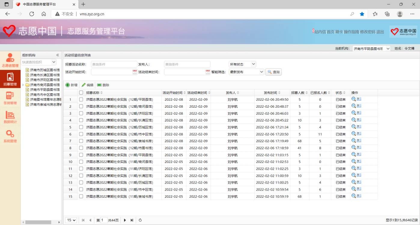 活动开始前,志愿者们分别加入防疫审查组和技术组参与志愿活动,并在负责人的指导下明确了活动的主要任务和注意事项,为活动的有序开展做了充足的准备。活动中,志愿者们对待工作谨慎负责,各司其职,发挥所长。防疫审查组的志愿者,对活动报名的志愿者进行防疫审查工作,严格遵守中央、省、市有关疫情防控工作要求,认真核查“志愿者填报单健康承诺”、“通讯大数据行程卡”、“健康码”、“疫苗接种记录”四项信息,守住了济南市图书馆防疫工作的第一道关卡。技术组的志愿者们则为该活动的有序开展提供了技术方面的支持和援助,确保该活动能够正常进行。在志愿者们的努力下,济图志愿2022年寒假社会实践活动圆满结束。