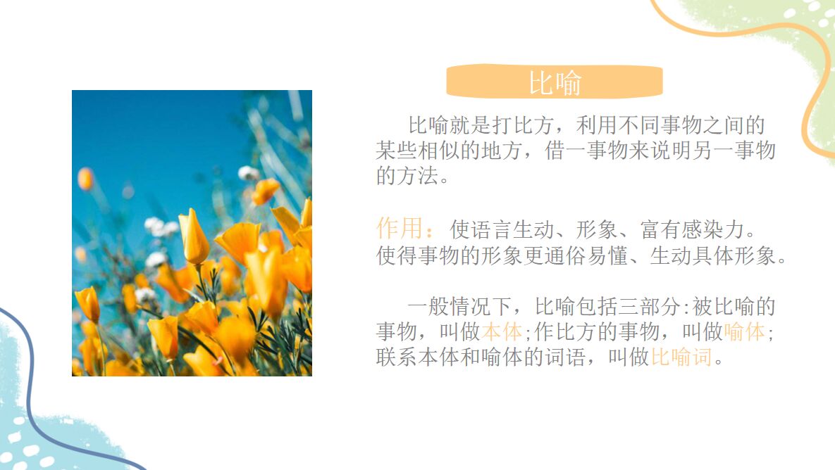 的志愿者轮流授课为主。在课堂上,志愿者们以“同学们眼中的春天”这个问题为切入点,鼓励学生踊跃回答,激发他们的课堂积极性。问题回答结束后,志愿者紧接着开始本节课的授课重点:古人眼中的春天——《乡间四月》。志愿者采用图文结合的方式,细致讲解了诗文中的一些难以理解的意象,又以小比赛的形式重点讲解了“蚕”、“桑”两个字,以便学生充分理解掌握。课堂最后,志愿者为同学们拓展了一些描写田园风光的诗句,本次课堂活动圆满结束。