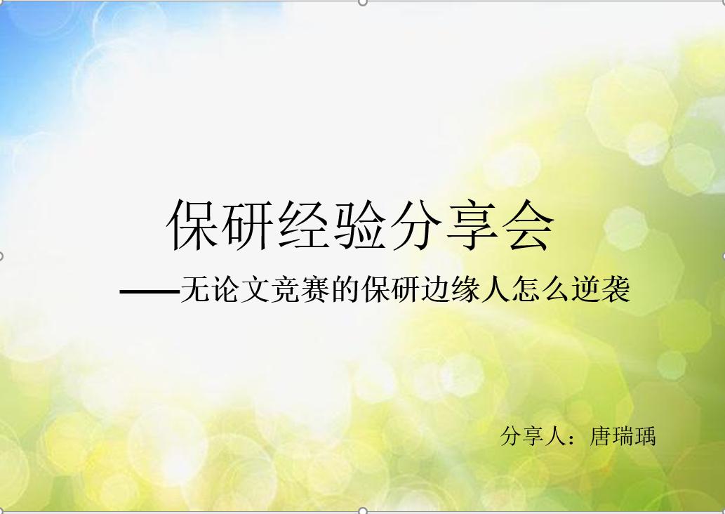 本次活动的主题为“保研经验分享会之无论文竞赛的保研边缘人怎么逆袭”。活动主要内容分为五个板块,分别是唐学姐的个人简介、保研的前期准备、夏令营考核过程、关于夏令营的常见误区和答疑环节。其中唐学姐对保研的前期准备、夏令营考核过程和关于夏令营的常见误区进行了进一步的详细讲解,以帮助同学们对保研过程有了更全面的了解,使同学们受益匪浅。其中受到最广泛关注的便是夏令营方面的问题,学姐从准备书面材料、了解开设夏令营的院校、夏令营流程、线上考核以及线下考核等各方面向同学们介绍了前期准备和夏令营的考核的详细过程,收到同学们的一致好评。在答疑阶段,参与活动的同学们踊跃地提出了相关问题,唐学姐也一一进行了答疑。