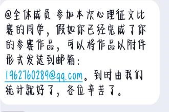 心理协会工作人员有条不紊、分工明确,顺利完成前期的宣传活动,建立了活动群,确定了活动参与人员,同时明确了活动形式、时间等工作。活动过程中,参与人员通过文字的形式表达内心深处的情感浮动,抒发自己的心声,并将作品上传至指定邮箱。活动结束后,捷克论坛
