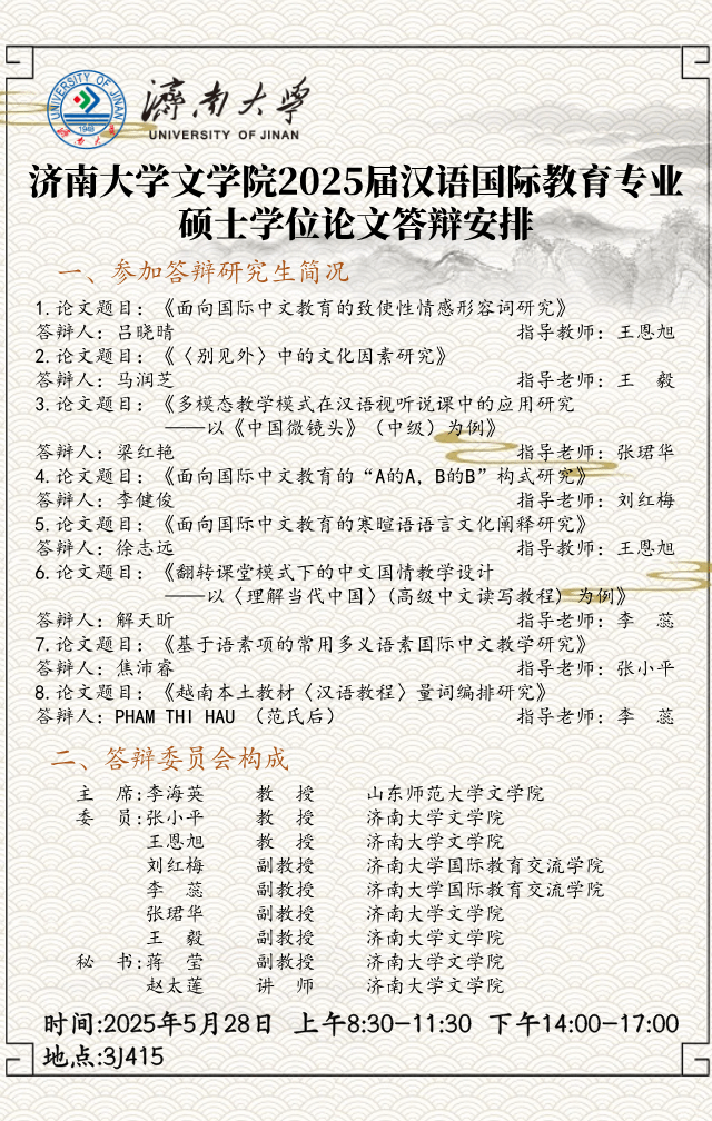 2025届汉语国际教育专业硕士学位论文答辩公告