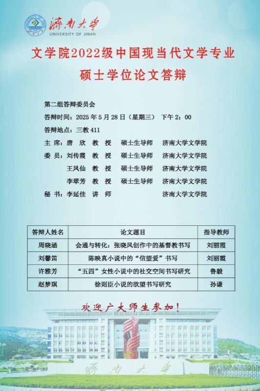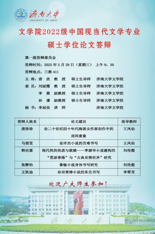 2025届中国现当代文学专业硕士学位论文答辩公告