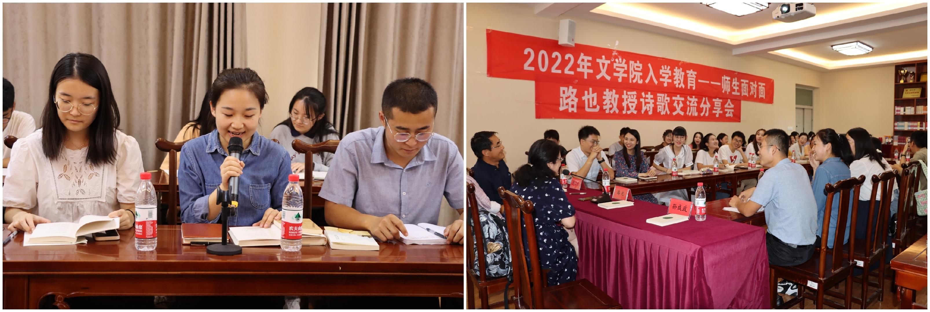 “在路也老师的诗歌中既有一种无限又有对于人类自身有限的思考,清朗、飞扬,既有庞然大物又有细微点滴,有时像‘女游击队员’有时又像一捧雏菊。这次分享交流会使我能够有机会与诗人亲密接触,受益匪浅。”新生代表陈彤炜意犹未尽地说。
