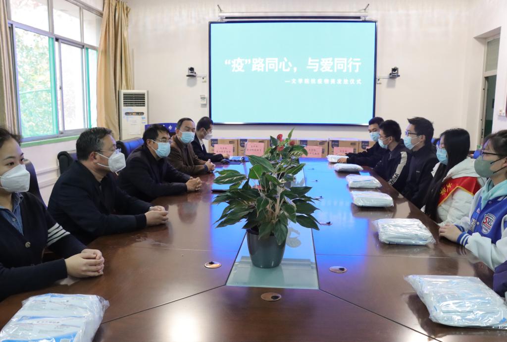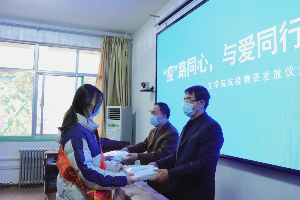 在3教411室为学生发放防疫物资。