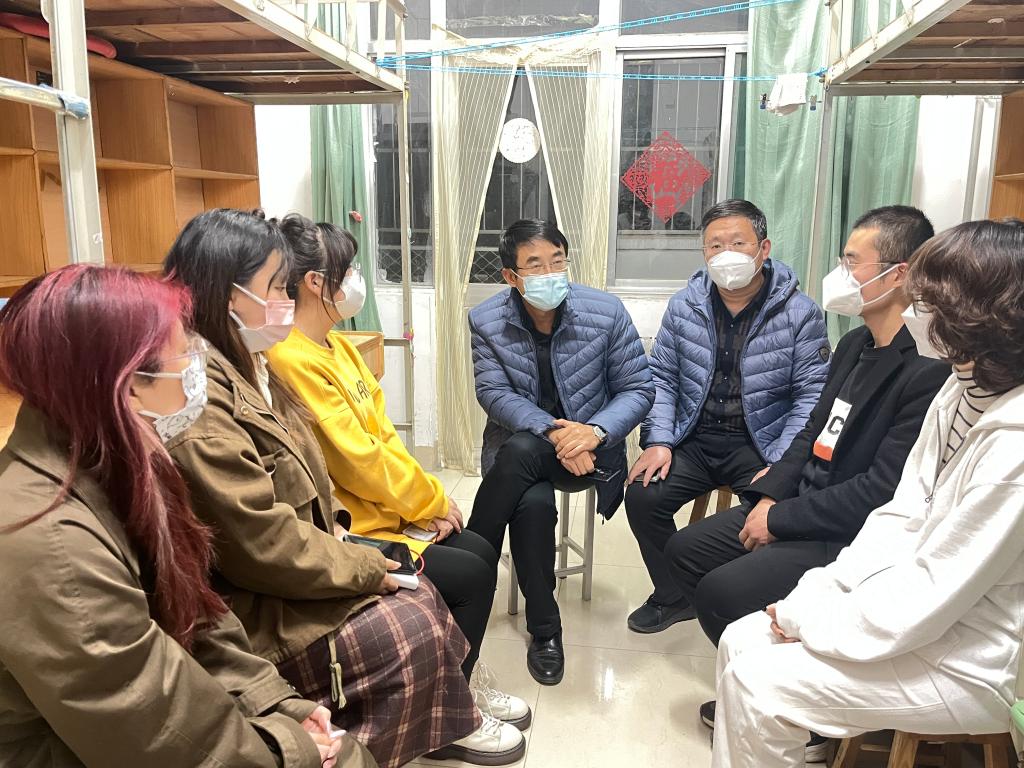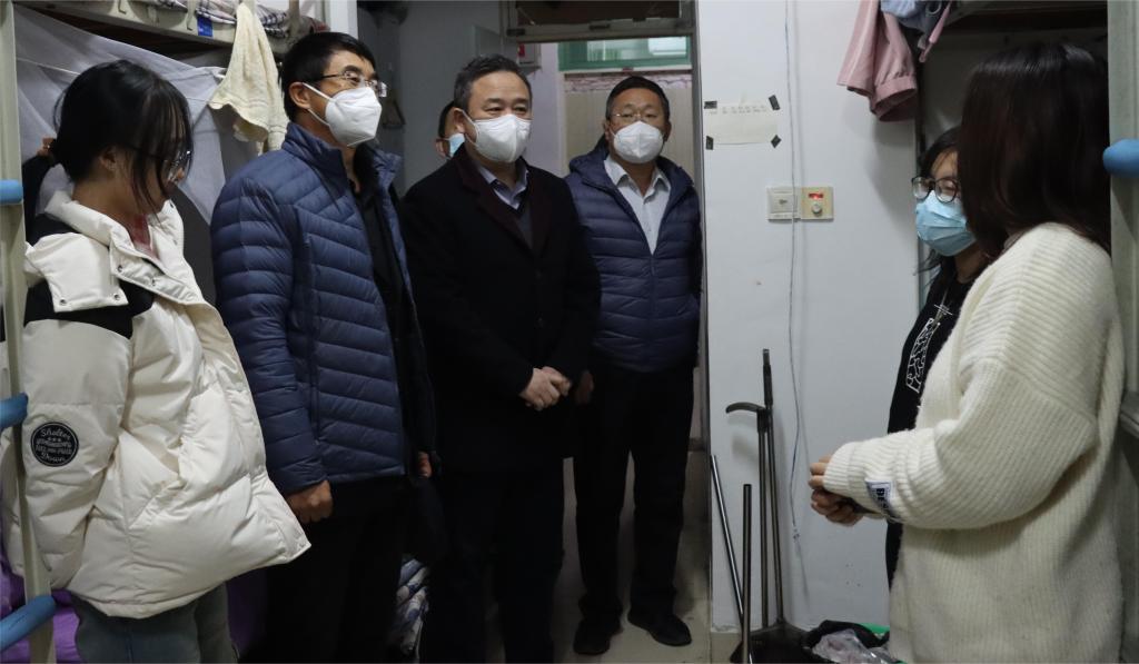领导、老师分别深入自己年级宿舍,详细了解学生最近的学习生活情况和精神状态,重点强调了疫情防控、宿舍卫生和安全等问题。
