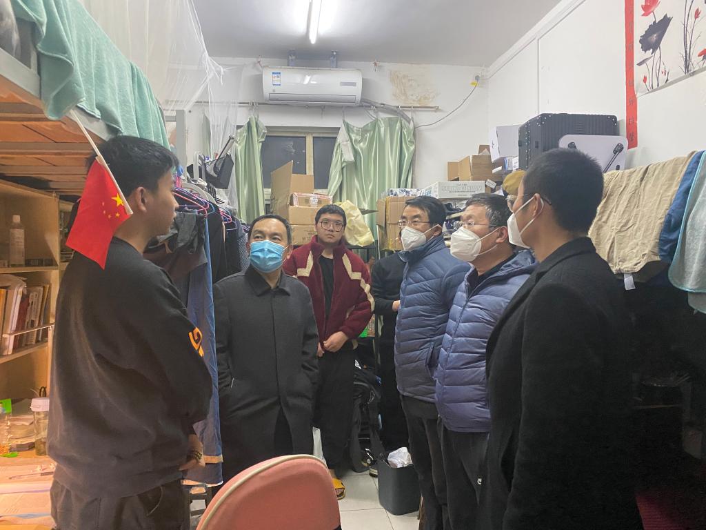 同学目前生活和学习上还有什么困难?宿舍暖气热不热?线上授课的教学效果怎么样?督促同学们做好冬季宿舍安全隐患的防范,特别是用电的安全。提醒大家勤通风、勤洗手、多喝水。希望大家疫情下更要互相关爱、多理解、多包容,使宿舍有一个和谐温馨的氛围。