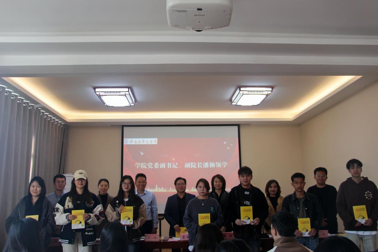 领导老师向少数民族同学赠送相关理论书籍,鼓励同学们积极加强理论学习,增强明辨是非的眼界和能力,立志做有理想、敢担当、能吃苦、肯奋斗的新时代好青年。